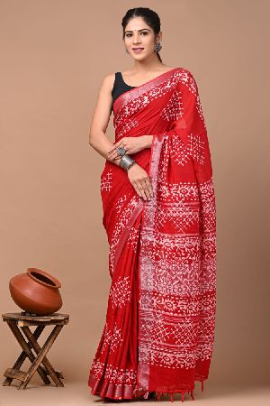 We at Keshvi Hand Prints design the most attractive collection of hand block printed cotton linen sarees weaved carefully by expert designers. These sarees are a unique blend of quality and style and come in multi-colored, exclusive hand block prints that are irresistible and stunning. They are very lightweight and ideal for daily use. They can be easily draped around, giving the wearers a comfortable, chic, and luxurious look.