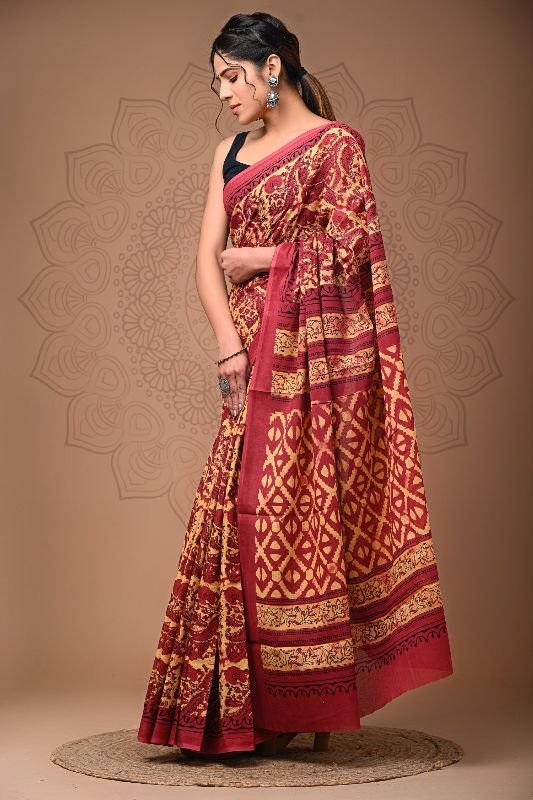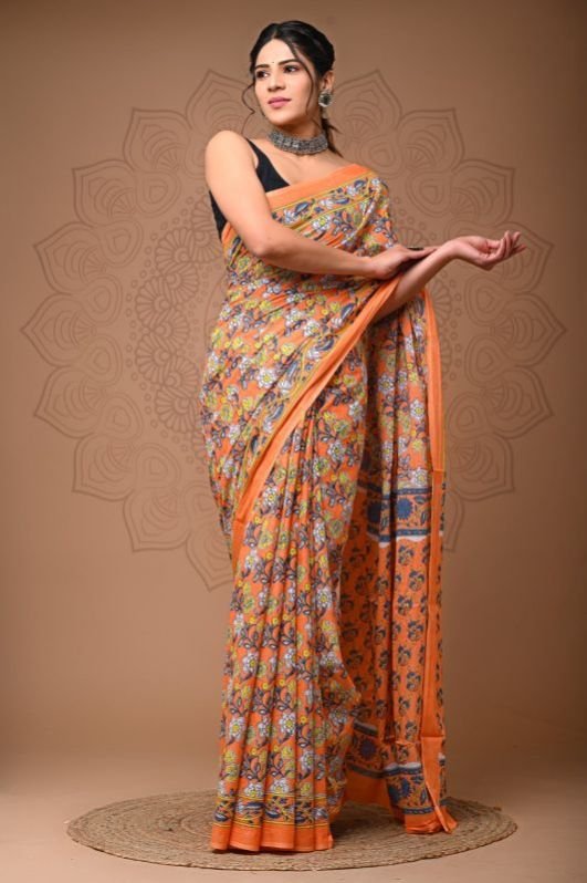 Keshvi Hand Prints is one of the hand block printed saree suppliers in Jaipur (Rajasthan) that manufactures premium quality hand block printed sarees. Our hand block printed sarees are made from 100% genuine fabric and come in uniform thickness, alluring designs, attractive color combinations, and excellent tear strength. We design and craft these sarees using up-to-date techniques. Our hand block printed sarees give a very comfortable, casual, and luxurious feel to the wearers. One can drape and handle these sarees easily.